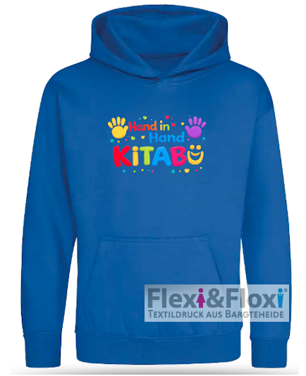 So hat jeder die Möglichkeit, ein bisschen Kitabü-Liebe in die Welt hinaus zu tragen und dabei auch noch gut auszusehen. Es gibt unser buntes Logo wahlweise auf einem royalblauen T-Shirt, Hoodie oder Zoodie, sowohl in Kinder- als auch Erwachsenengrößen. Sofern der Probelauf gut ankommt, können wir die Kollektion in Zukunft noch erweitern.